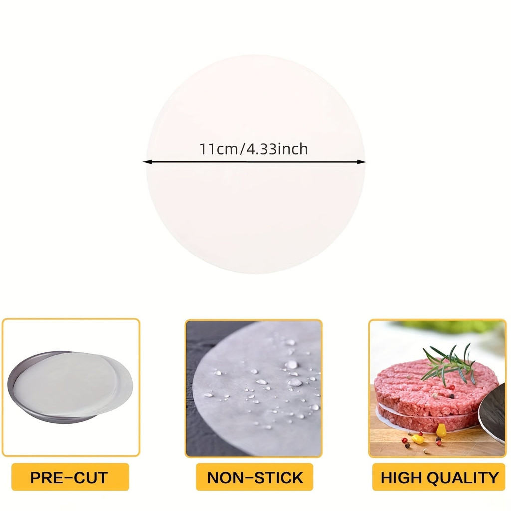 (Kör alakú kialakítás) Ezek a pergamen papírok tökéletesen illeszkednek a hamburger pogácsákhoz, így biztosítva az egyenletes sütést és a könnyű kezelhetőséget.