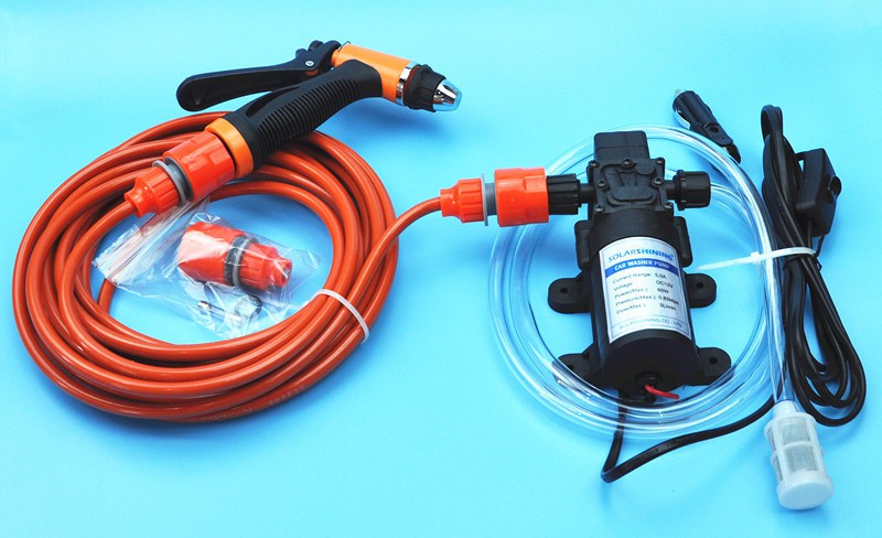 12V Szivargyújtós hordozható autós szivattyú szórófejjel és slaggal / nagynyomású mosó