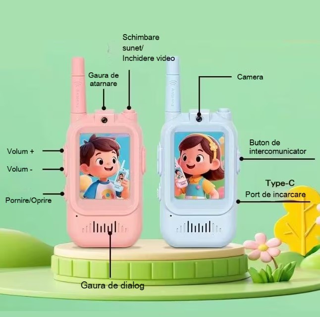 Ez a modern, 2 darabos walkie-talkie készlet nem csupán egy egyszerű adó-vevő: a beépített HD kamerának köszönhetően a gyerekek nemcsak hallhatják, hanem láthatják is egymást játék közben.