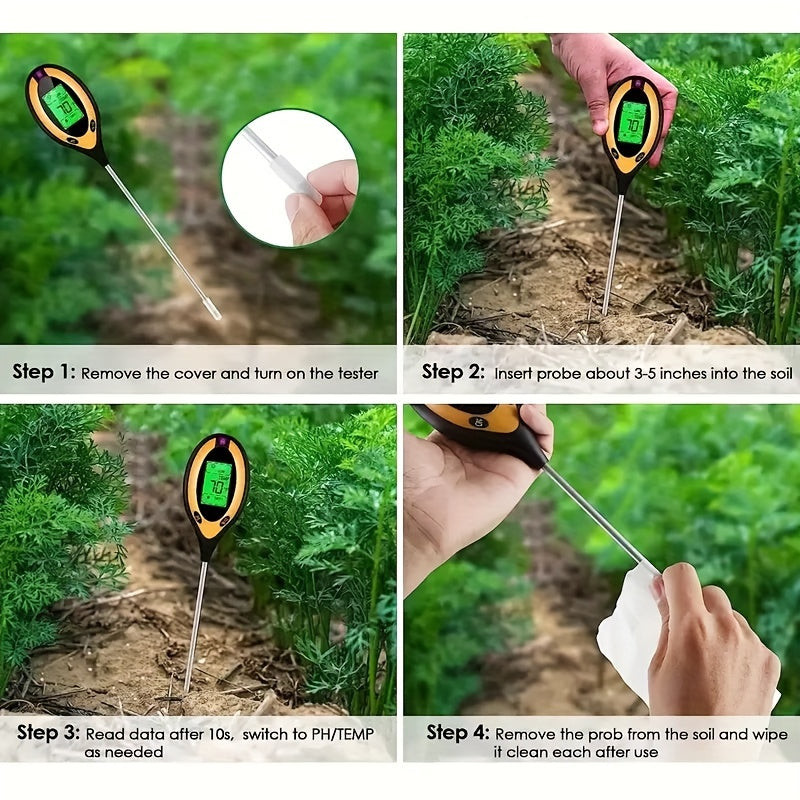 (Tökéletes választás) mindazok számára, akik szeretnék optimalizálni növényeik növekedési környezetét. A 4-az-1-ben Talajvizsgáló Készlet kompakt és hordozható, így bárhová magaddal viheted. A pontos mérések segítségével könnyen meghatározhatod, hogy szükség van-e öntözésre vagy tápanyag utánpótlásra. Emellett a készülék egyszerű, digitális kijelzőjének köszönhetően az eredmények gyorsan és könnyedén leolvashatók. Fedezd fel a talajod rejtett titkait, és hozd ki a legtöbbet kertedből ezzel a sokoldalú eszközzel!