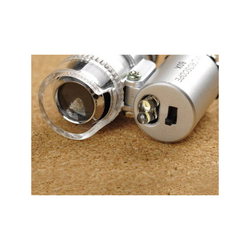 A JUBILER LUMP MIKROSKÓP 60x 2 LED PROFI egy zsebmikroszkóp, amely 60x-es nagyítással és 2 LED-del rendelkezik, hogy láthasd a legapróbb karcolásokat vagy ujjlenyomatokat.
