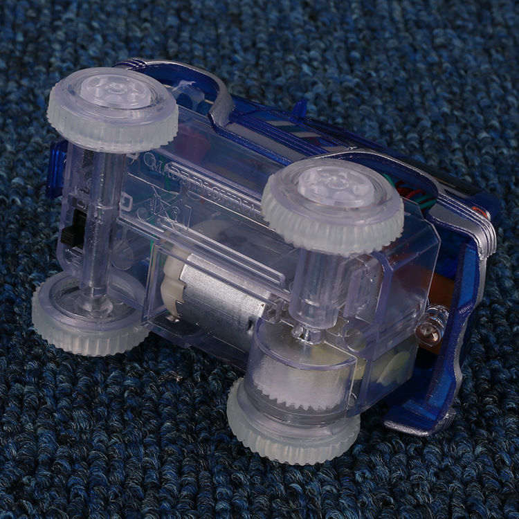A ceruzaelemmel működő kisautó LED világítása sötétben segít megvilágítani a pályát.
