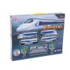 | A készlet tartalma: | 2 Szélső vagon (ebből 1 elemmel működik) - 18 x 5 cm 2 Köztes vagon - 16 x 5 cm 1 Állomás 2 Fa Útjelző táblák Tematikus matricák 16 Sín (8 db íves, 8 db egyenes) |