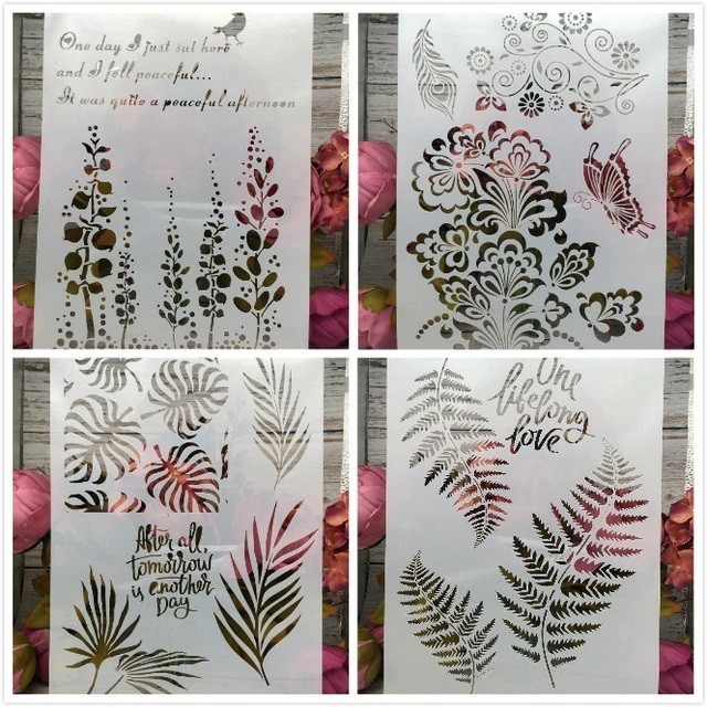 Egy csomag négy különböző műanyaglapból áll, amelyeken szebbnél szebb sablonok találhatóak.