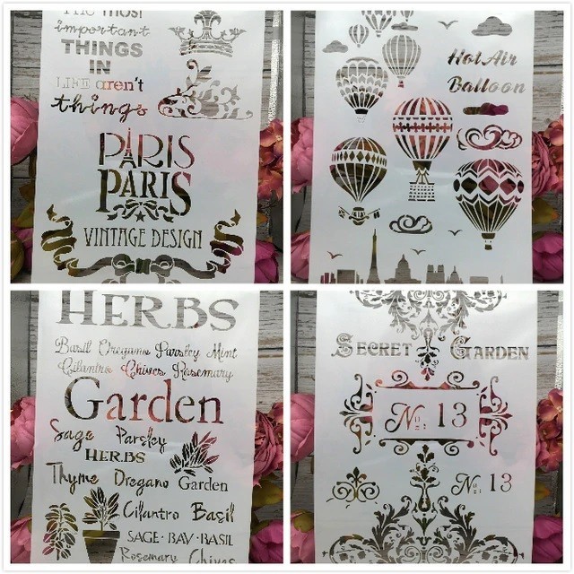 Egy csomag négy különböző műanyaglapból áll, amelyeken szebbnél szebb sablonok találhatóak.