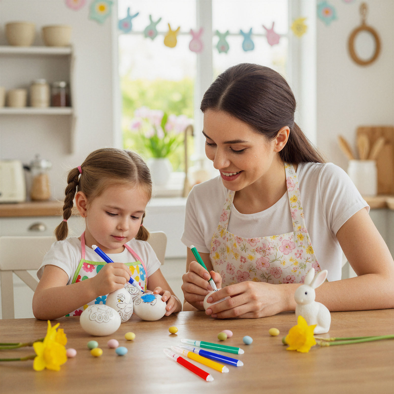 Tegye még kreatívabbá és szórakoztatóbbá a húsvéti készülődést ezzel a festhető tojás szettel! A csomag előre mintázott tojásokat tartalmaz, amelyeket a mellékelt 4 színes filctoll segítségével egyedileg dekorálhat. A különböző minták (pl. állatok, virágok, léggömbök, torta) lehetőséget adnak a gyerekeknek és felnőtteknek egyaránt, hogy kibontakoztassák kreativitásukat. A tojások tartós műanyagból készültek, így többször is használhatók. Ideális húsvéti dekorációként, ajándékként vagy közös családi alkotótevékenységhez is.