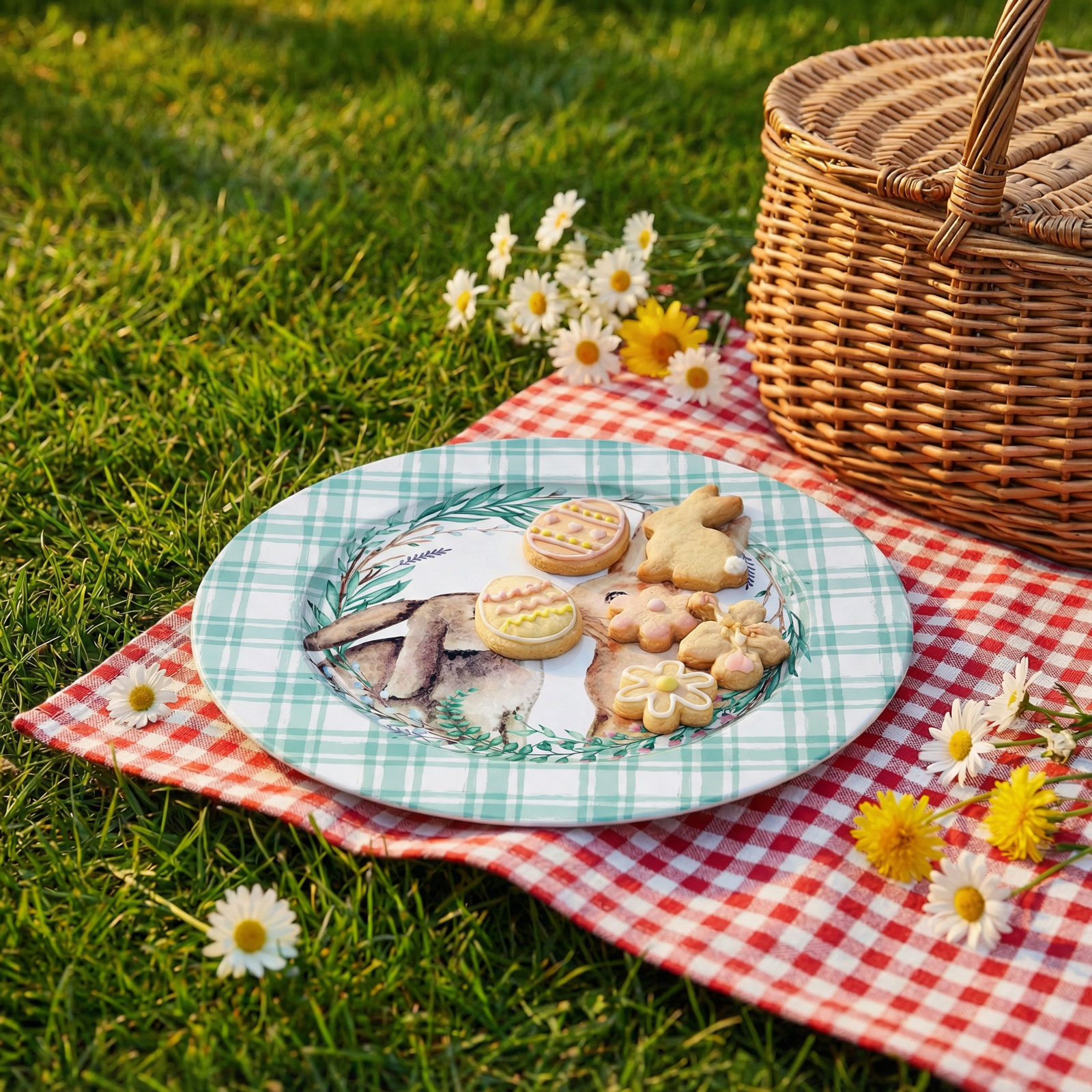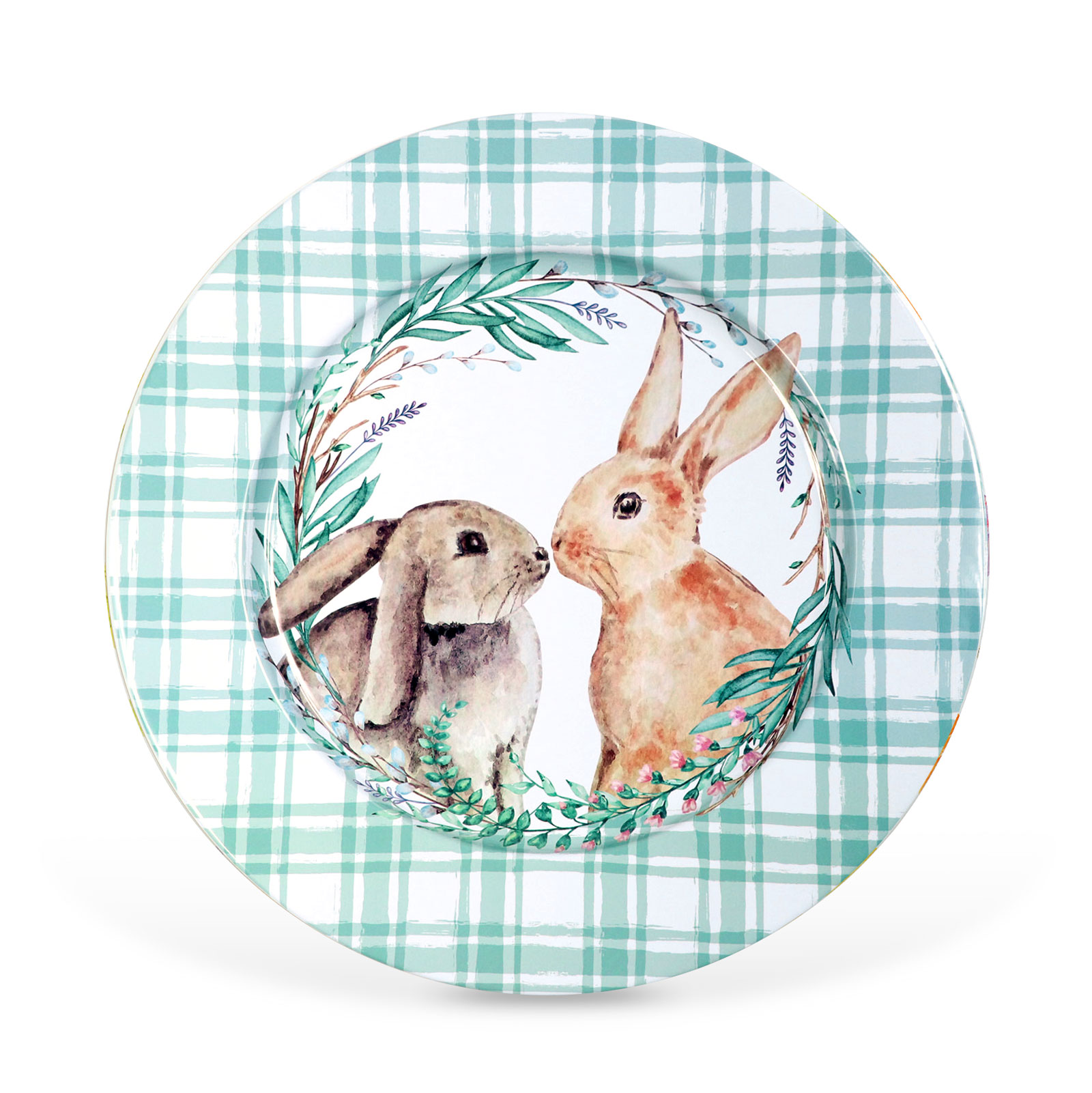 Tegye különlegessé ünnepi asztalát ezzel a bájos, nyuszis mintával díszített húsvéti tányérral! A fémből készült dekor tányér elegáns kiegészítője lehet a húsvéti terítéknek. A kockás minta és a középen elhelyezkedő, szeretetre méltó nyuszis grafika tavaszi, ünnepi hangulatot varázsol otthonába. Ideális választás asztali dekorációként, ünnepi kompozíciókhoz, de ajándék kiegészítőjeként is megállja a helyét.