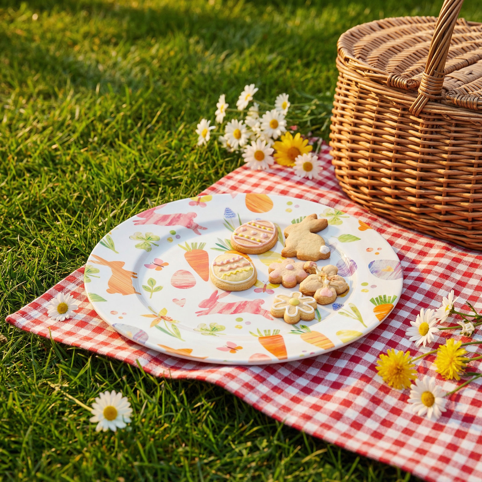 Varázsoljon vidám, tavaszi hangulatot asztalára ezzel a húsvéti mintás fém tányérral! A tányéron répák, nyuszik és színes húsvéti motívumok díszelegnek, melyek különleges dekorációvá és ünnepi tálalóeszközzé varázsolják. Strapabíró fémből készült, így hosszú ideig használható kompozíciókhoz, terítékekhez vagy akár önálló asztaldíszként is. Ideális választás húsvéti vendégváráshoz, ajándékozáshoz vagy a tavaszi dekoráció kiegészítésére.