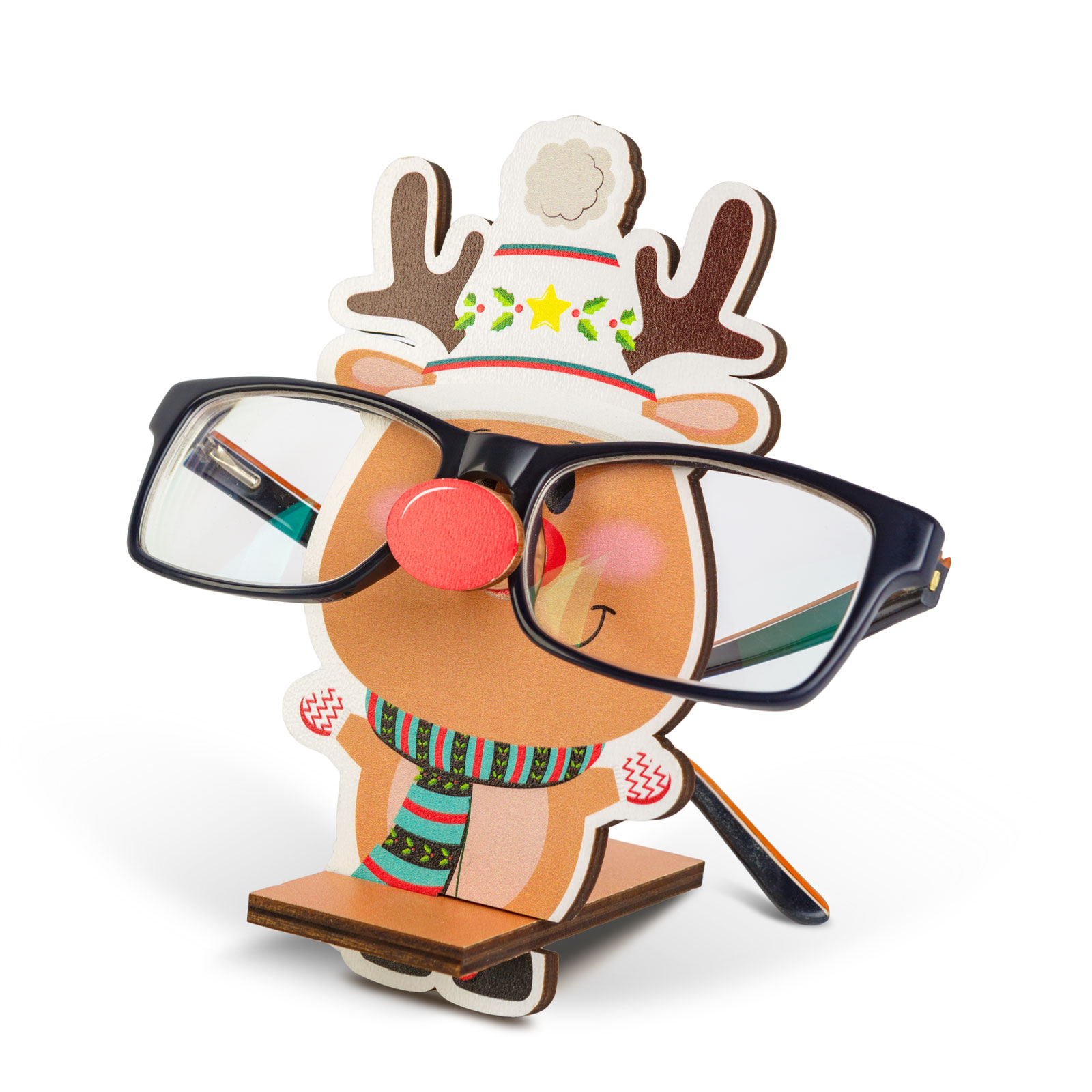 Tegye még ünnepibbé az asztalát ezzel a vidám karácsonyi szemüvegtartóval! A fából készült tartó praktikus és dekoratív kiegészítő, amely nemcsak segít biztonságosan tárolni a szemüveget, hanem egyedi karácsonyi hangulatot is teremt. A szemüvegtartó négy különböző változatban érhető el: Mikulás, rénszarvas, manó és hóember dizájnnal. A vidám figurák orrán biztonságosan megpihenhet a szemüveg, mégis mindig kéznél lesz, amikor szüksége van rá.