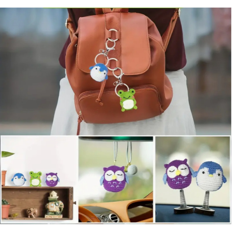 A készlet 8 könnyen használható fonalat, 5 öltésjelölőt, 3 kulcstartót, 2 használati utasítást, 1 csomag cérnabetétet, 1 tűt, 1 horgolótűt és egy lépésről lépésre bemutató videót tartalmaz.