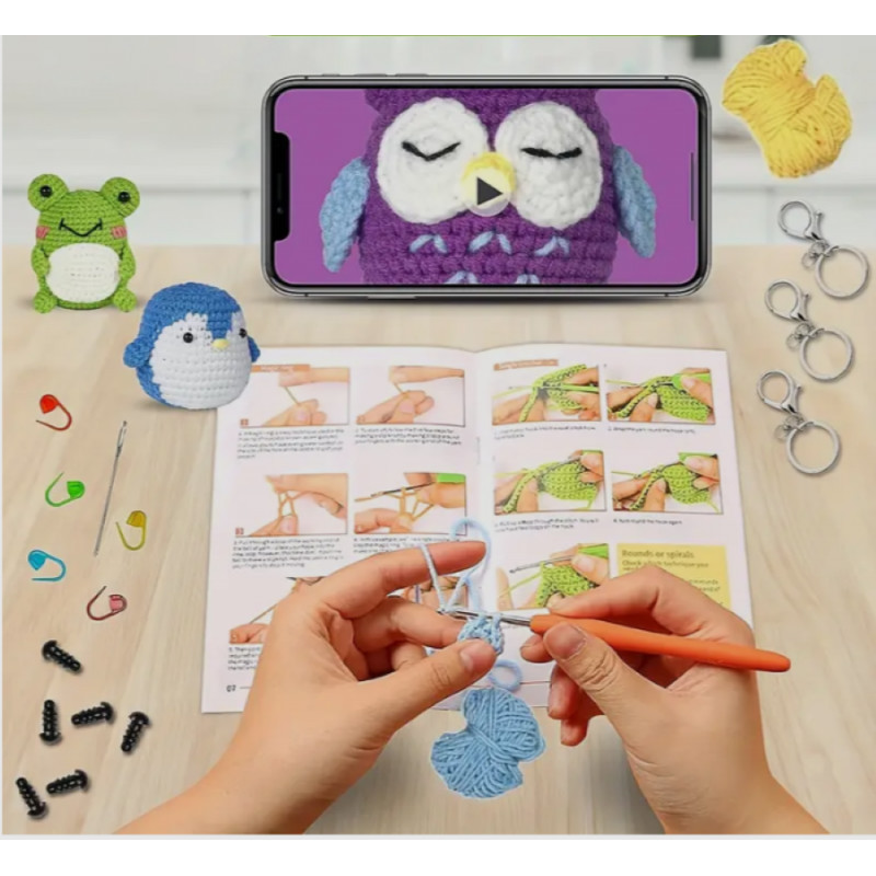A kezdő állatos horgolókészlet tökéletes választás, amellyel könnyedén megtanulhatod a horgolást művészetét.