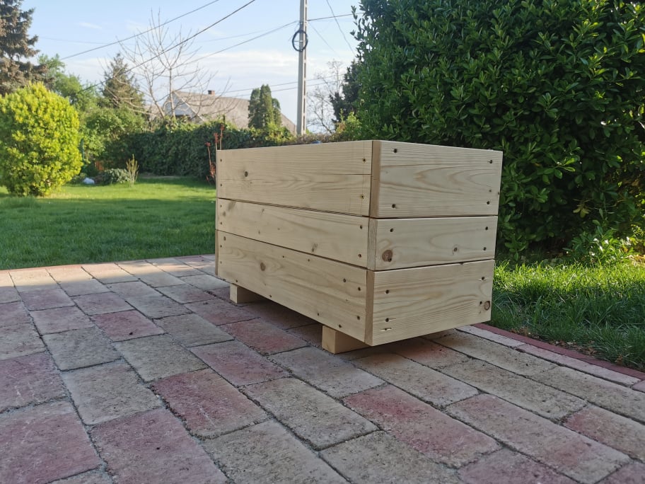 Rendkívül szilárd fenyőfából készült virágágyás, strapabíró és időtálló.