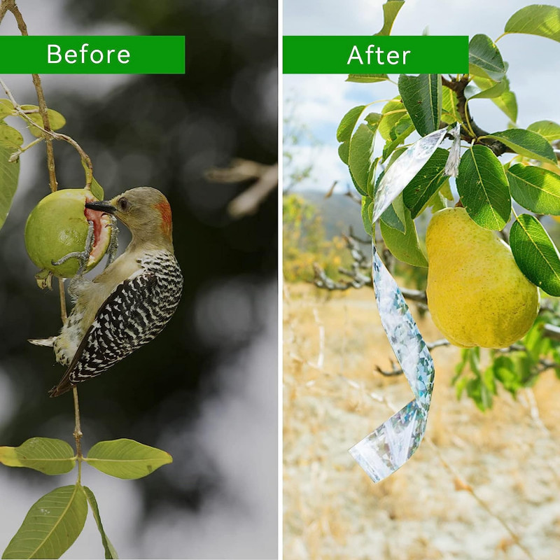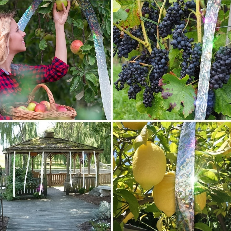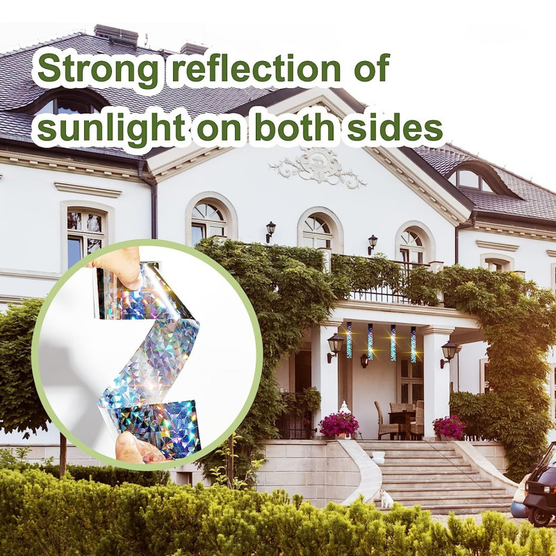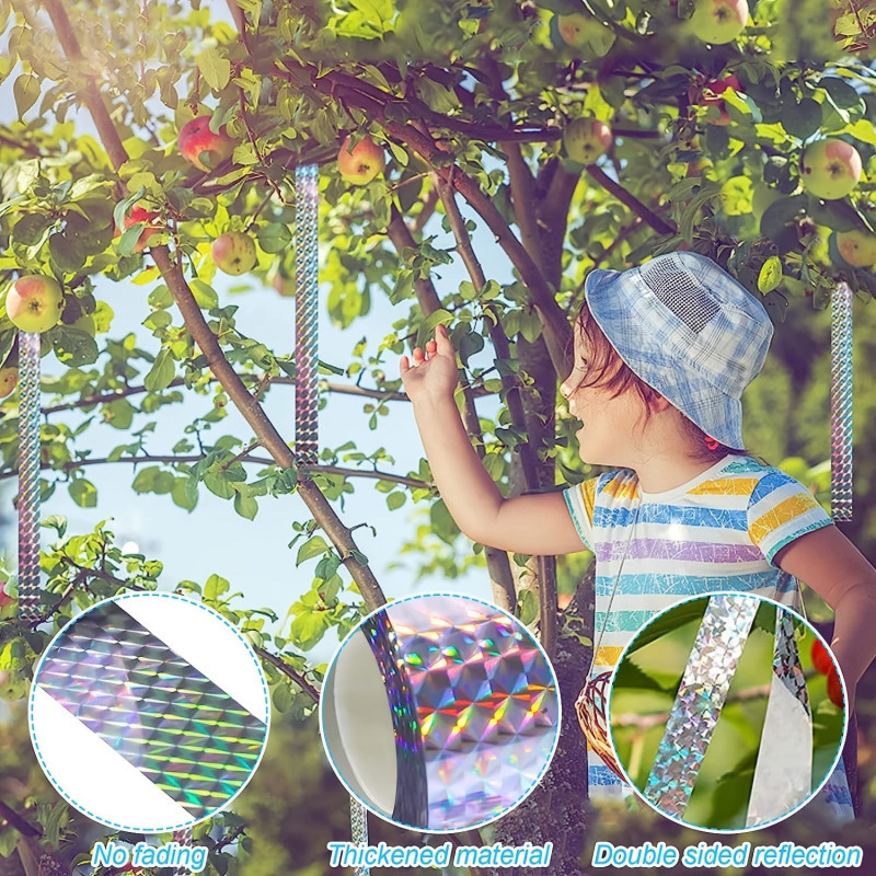 A kettős oldalú holografikus felülete visszaveri a fényt, és elrémíti a tollas barátainkat.