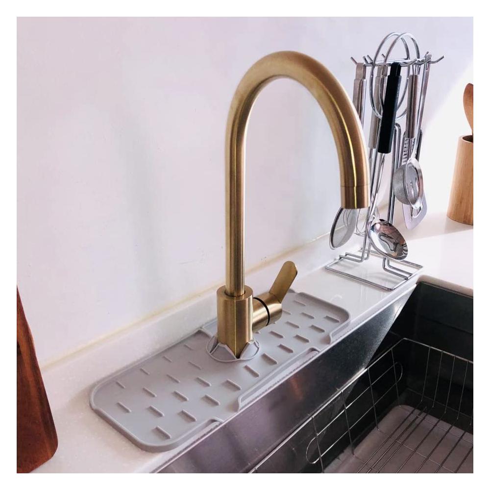 Termékünk speciális, körbetekerhető kialakítással rendelkezik, amely tökéletes a csap körül történő elhelyezéshez, tisztán és szárazon tartja a mosogatópultot. Azonnal felfogja a kifröccsenő vizet, és megakadályozza a víz felhalmozódását. A gumihátlap megakadályozza, hogy víz folyjon alá. Kevesebb, mint egy óra alatt megszárítható a levegőn, nincs szükség gyakori tisztításra, csupán néhány percet vesz igénybe a mosogatószeres tisztítása.