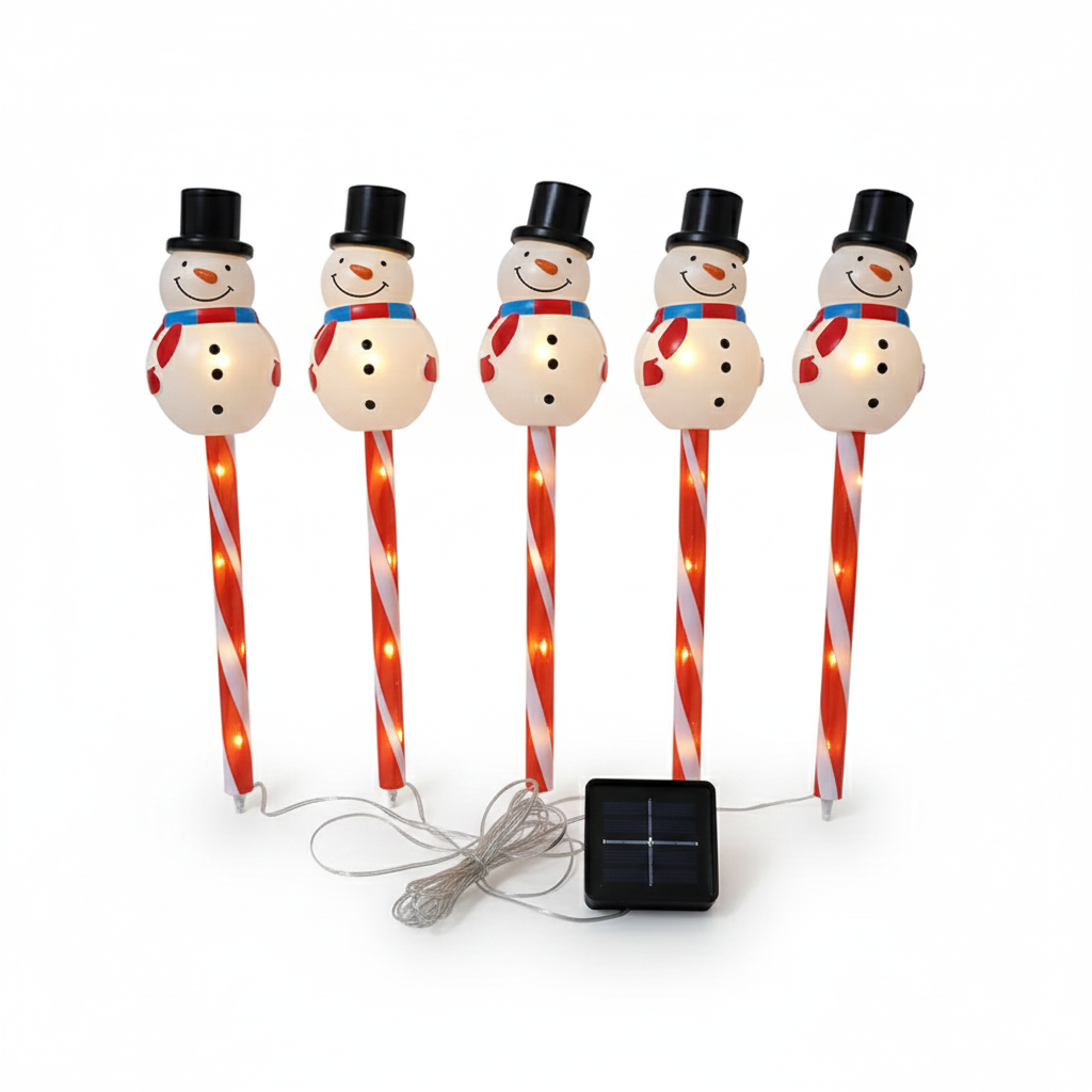 Varázsoljon azonnal mesés karácsonyi hangulatot otthona elé ezzel az 5 db napelemes hóemberből álló dekorációs szettel!