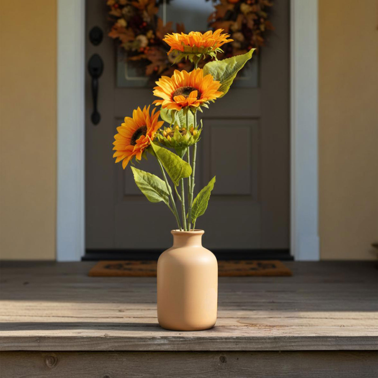 Ez a dekoratív napraforgó kiváló választás lehet vázákba, őszi kompozíciókhoz, például bejárat, étkező vagy a lakás bármely életterének díszítésére. Tartós anyagból készült, így hosszú ideig megőrzi szépségét és színét, bármilyen belső térben.