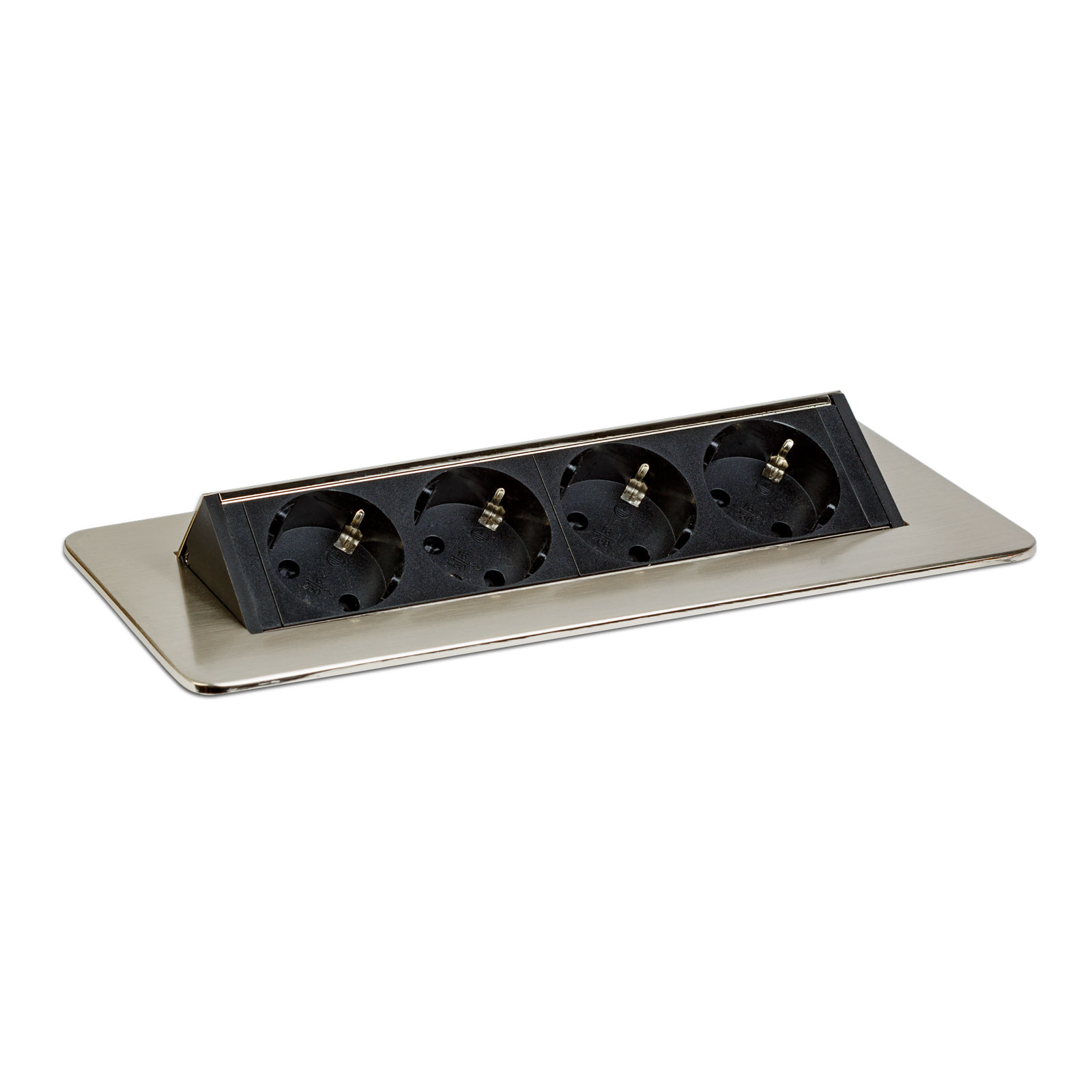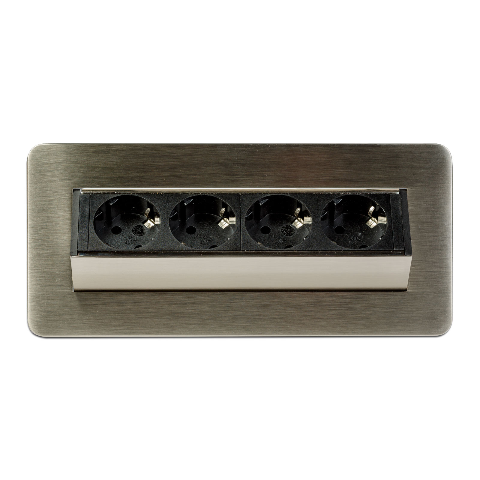 Süllyeszthető elosztó irodai és otthoni felhasználásra, szálcsiszolt felülettel, 4 db gyermekvédelemmel ellátott aljzattal. Asztala, bútora legyen mindig elegáns és rendezett, mégis funkcionális. A rejtett elosztó kiváló megoldás lehet ha már például kész konyhával rendelkezik, de nincs elegendő konnektor a kívánt helyen. Ilyenkor falvésés és villamos hálózat bővítés nélkül, remek alternatíva lehet egy rejtett elosztó. Egy mozdulat és máris rendelkezésre áll 4 szabad konnektor. Ideális lehet olyan elektromos eszközökhöz, amit nem folyamatosan használunk, kenyérpirító, vízforraló... Ha használaton kívül vannak, az "flip-up" elosztó egy mozdulattal elrejthető, ezzel is megkönnyítve például a takarítást, valamint rendezett, letisztult külsőt ad a helységnek.