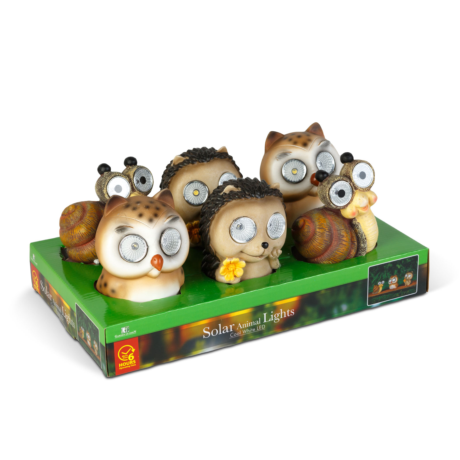 Tegye vidámabbá kertjét vagy erkélyét ezekkel a szolár állatfigurákkal, amelyek különböző formában érhetők el: csiga, süni, bagoly. A melegfehér LED-ek kellemes, hangulatos fényt biztosítanak, így nappal díszként, este pedig dekoratív világítóelemként szolgálnak. A beépített napelem napközben tölti az akkumulátort, így a lámpa sötétedés után automatikusan bekapcsol. A kis figurák kiválóan elhelyezhetők virágágyások szélén, kerti utakon vagy akár erkélyeken és ablakpárkányon is. Műgyantából, műanyagból készültek, így esztétikusak és időjárásállóak is egyben.