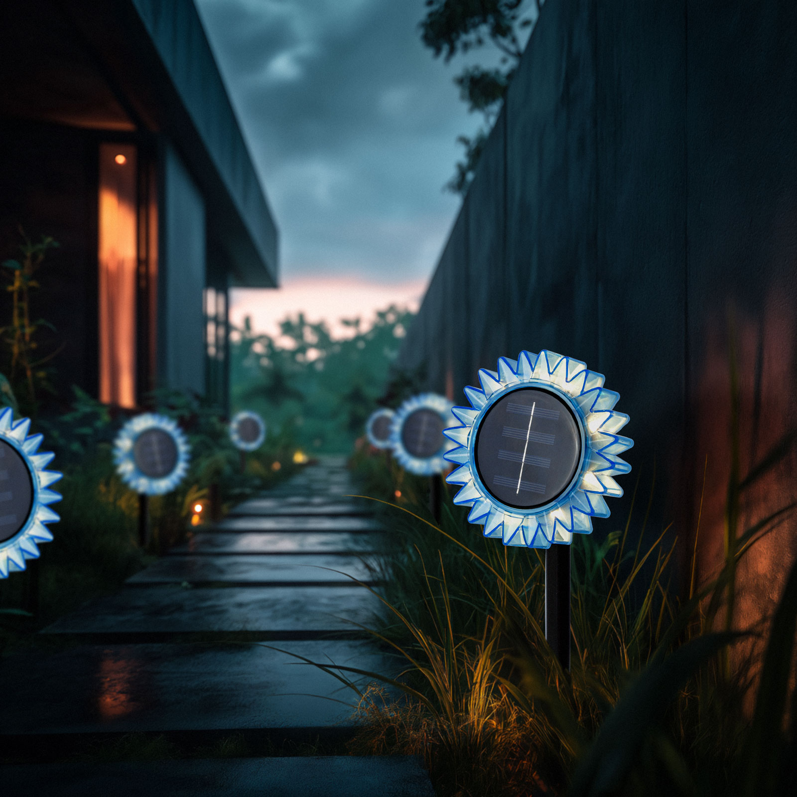 Ez a dekoratív szolár napraforgó lámpa hangulatossá varázsolja kertjét vagy teraszát. A többféleképpen rögzíthető kialakításnak köszönhetően leszúrhatóként és felakasztva is használható, így könnyedén illeszkedik bármilyen kültéri környezetbe. A beépített napelem napközben hatékonyan gyűjti a napfényt, melyből energiát biztosít az esti melegfehér LED világításhoz. A lámpa automatikusan kapcsol be sötétedés után, így nemcsak szép, de praktikus megoldás is a kert díszítésére.