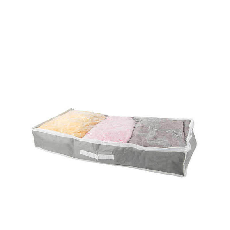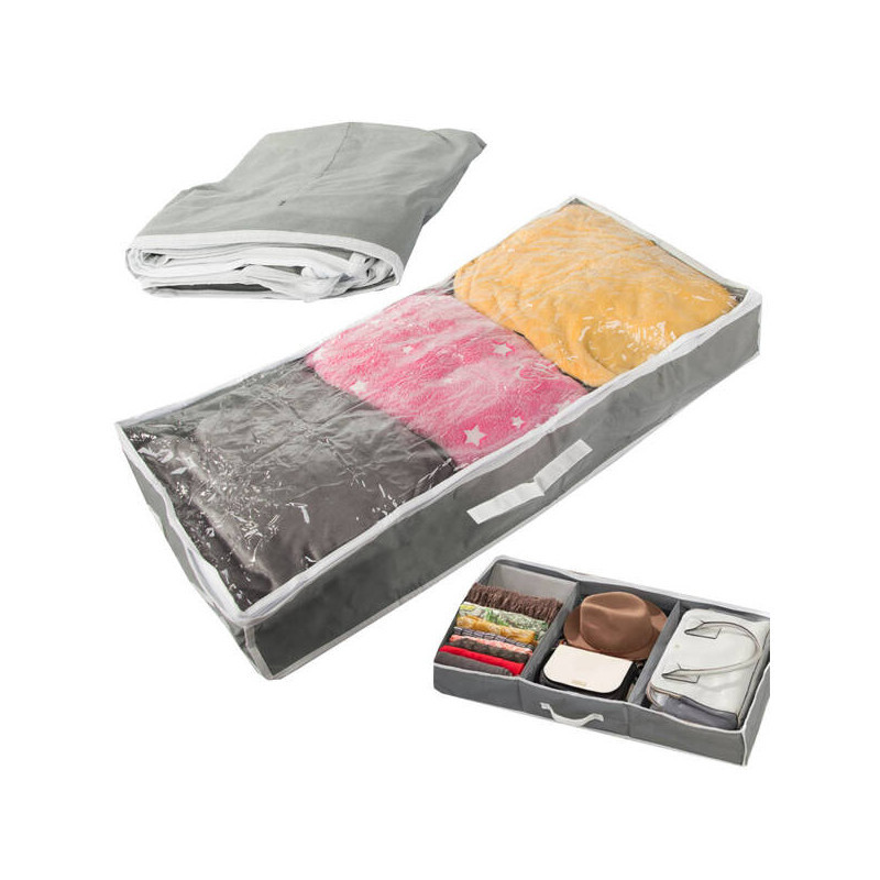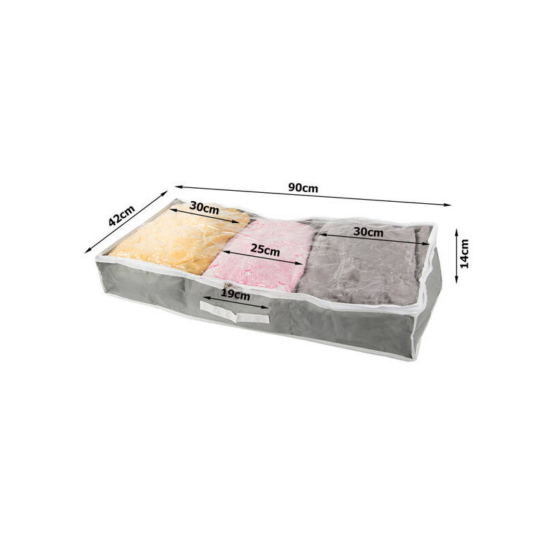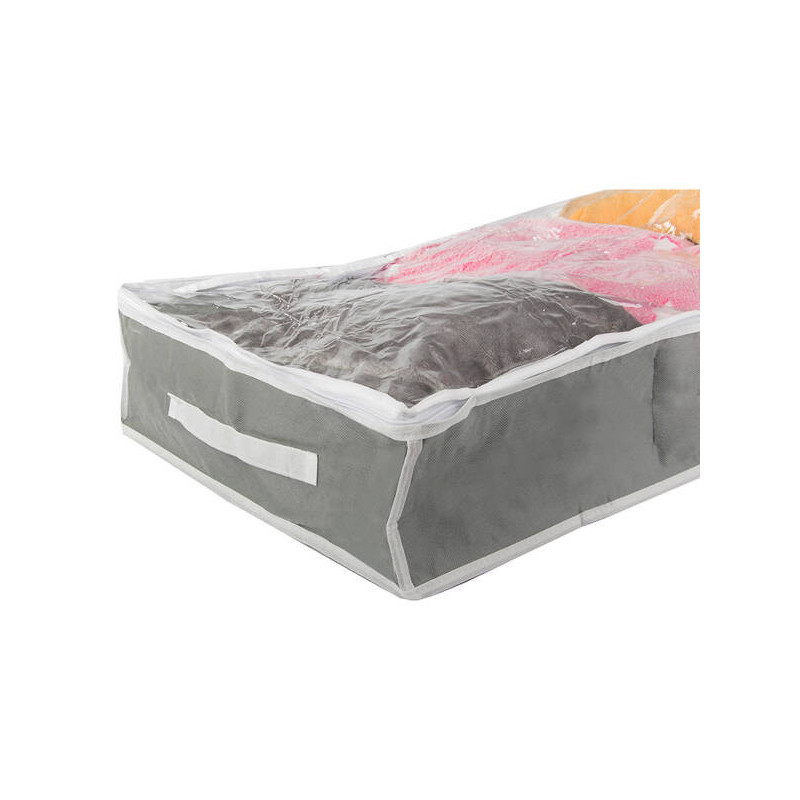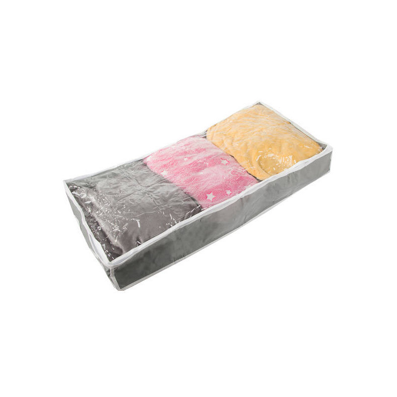 Szereted rendben tartani a gardróbodat? Kicsi a lakásod, és helyet szeretnél spórolni? Fogalmad sincs, hova pakolj hasznos vagy haszontalan dolgokat? Mindezekre a problémákra megoldást jelent egy sokoldalú cipzáras szervező, amiben tárolhatsz ruhákat, takarókat, könyveket, játékokat, cipőket és még sok mindent. A dobozt betolhatod az ágy alá vagy a gardrób aljára. Lélegző anyagból készült. A tárolódobozon két oldalon praktikus fogantyú is található, hogy könnyen ki tudjad húzni a gardróbból.