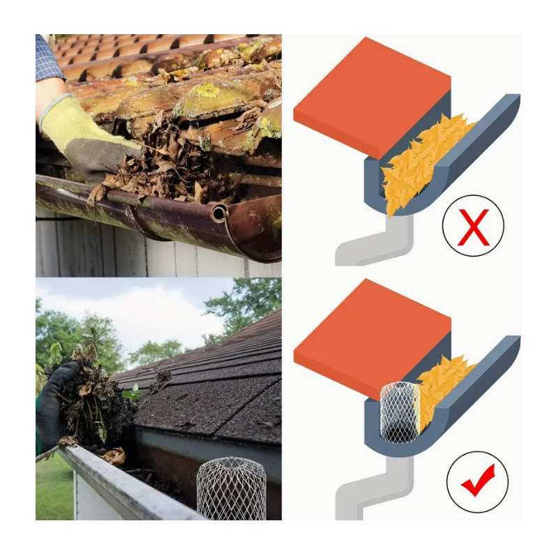 Kiszűri a leveleket, mohát és minden egyéb szennyeződést, megakadályozza, hogy az ereszcsatorna eltömődjön.