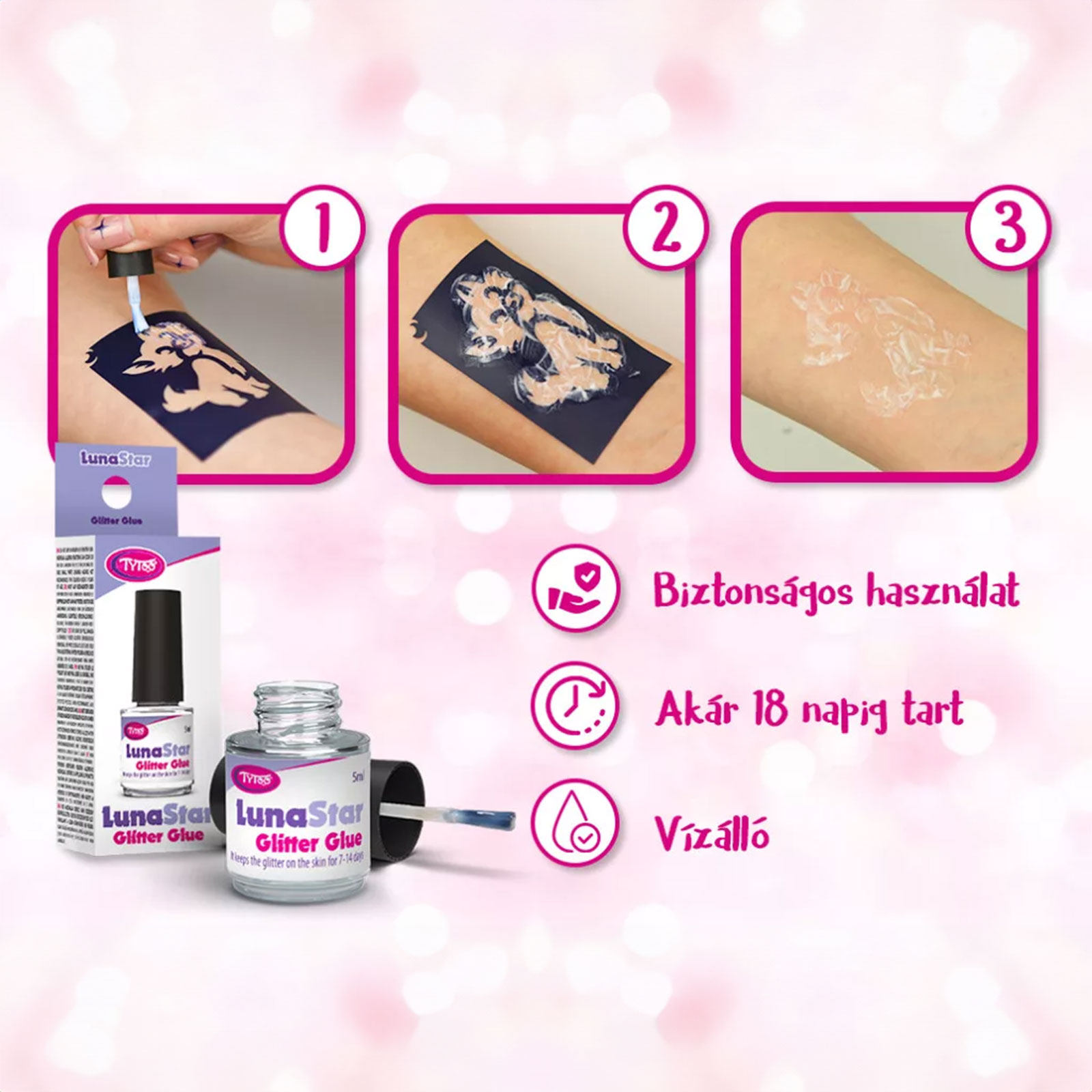 A testdíszítéshez szüksége van egy erős, tartós és mindenképp biztonságos ragasztóra, amit a gyerekekre is nyugodt szívvel kenhet. Ilyen a TyToo Fehér 5 ml ragasztó is ami 50 db átlagos méretű mintára elegendő. Ahhoz, hogy kényelmesen tudjon alkotni az üveg kialakítása hasonlít a körömlakkos üvegekhez, így komfortosan foghatja a kezében.