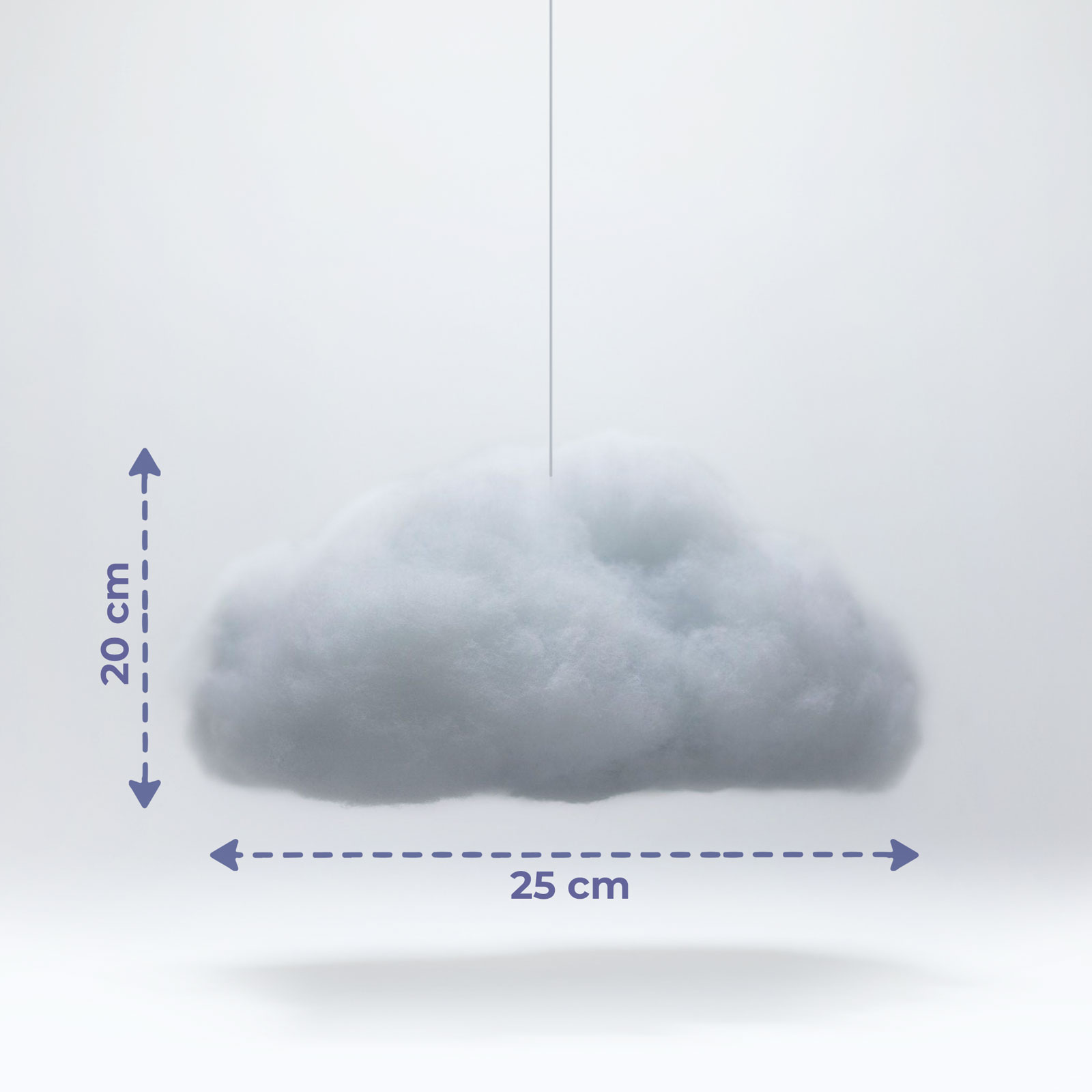 Teremtsen egyedi és megnyugtató atmoszférát ezzel a különleges felhő alakú lámpával! A puha, vatta anyagból készült dekoráció varázslatos, lebegő hatást kelt, miközben a közepébe rejtett LED-ek sejtelmes fénnyel világítják meg a felhőt. A 16 db állítható színű és fényerejű LED-del rendelkezik, így minden alkalomhoz és hangulathoz tökéletesen illeszkedik. A négy különböző világítási effekt lehetővé teszi, hogy lámpája mindig az Ön igényeihez igazodjon, legyen szó pihentető, lágy fényekről vagy hangulatos, dinamikus villogásról. A lámpa energiatakarékosan működtethető, hiszen 3 darab AAA elemmel működik, így könnyedén elhelyezhető bárhol – legyen az hálószoba, nappali vagy gyerekszoba. A tartozék damil és akasztó segítségével felakasztva érhető el a maximális felhőhatás, de jól mutat polcon, íróasztalon, éjjeliszekrényen elhelyezve is.